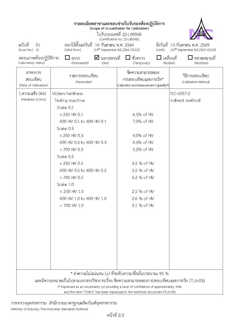 สอบเทียบ เครื่องทดสอบความแข็ง
